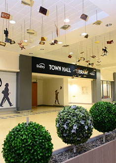 The main Town Hall entrance is located in the Crown Centre. The entrance is level.
